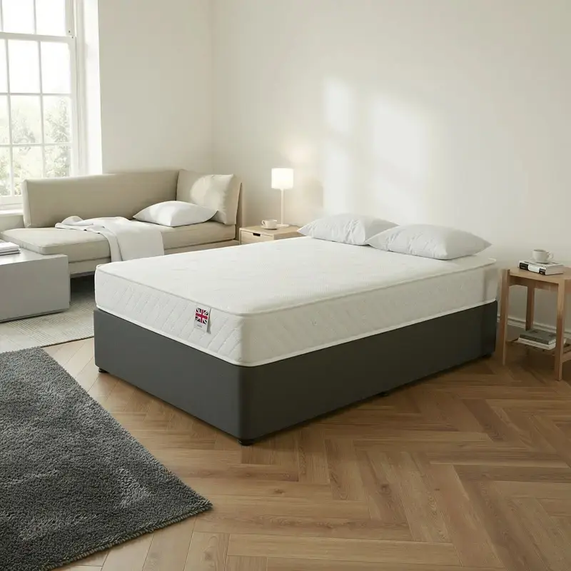 Perfect for back and stomach sleepers, this mattress combines firmness with pressure relief, helping to reduce aches and improve overall sleep quality. Available in all UK sizes from Single to Super King, it’s a versatile choice for any bedroom.